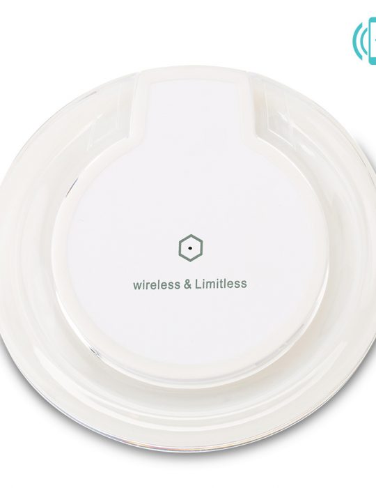 Cargador inalámbrico plástico. Input 5V 2A, output 5v 1A. 5W. Empaque Caja Individual.
