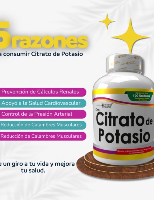 El citrato de potasio es un suplemento esencial que contribuye al equilibrio de funciones clave del organismo. Su consumo adecuado puede ayudarte a mantener una mejor salud renal, cardiovascular y muscular de forma práctica y efectiva.