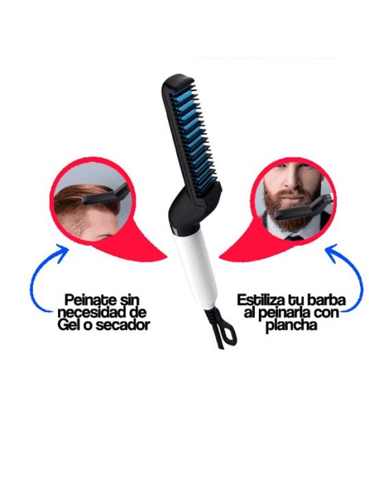 Primer cepillo alisador calentador diseñado para hombre, para un cabello y barba organizado en segundos, promueve la circulación sanguínea y la recuperación de las células capilares, reduce la caspa y enfermedades cutáneas permitiendo que el cabello sea más saludable y fuerte. Esto es lo que tú necesitas!
