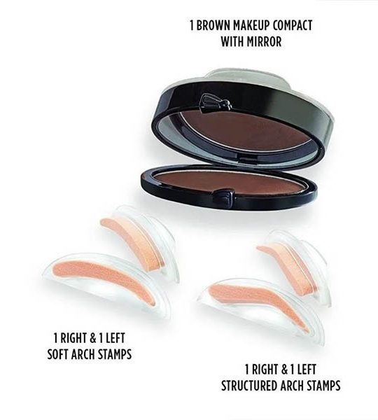 – El sello para cejas de 3 segundos incluye un compacto de tono marrón claro a medio y 2 sellos (arco estructurado y arco suave)